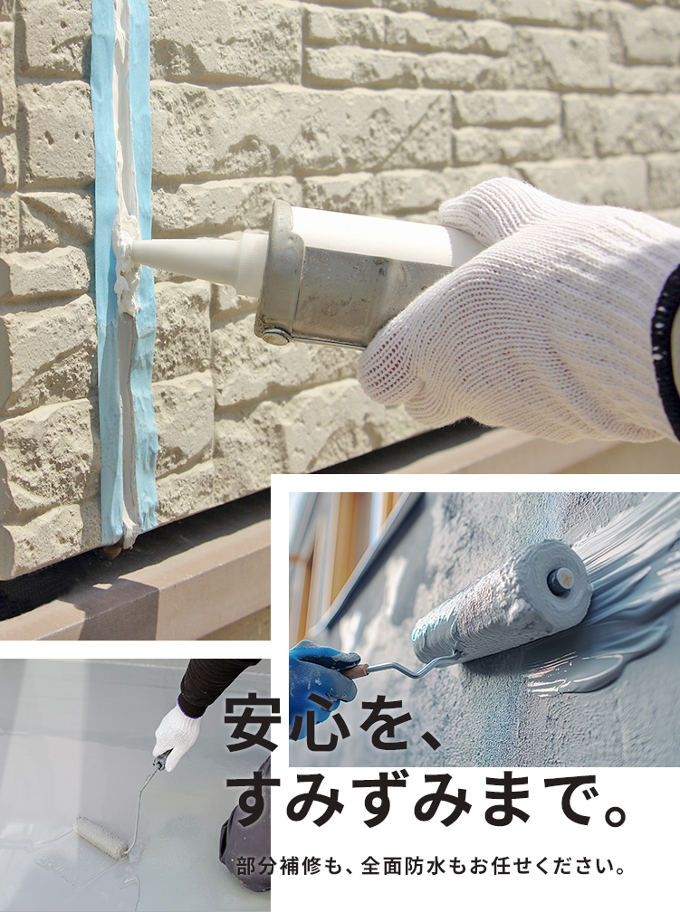 シーリング工事・防水工事は、お家の寿命を延ばす大切なメンテナンスです。また外壁の塗装工事も承ります。 外壁のひび割れや、ベランダ、屋上からの雨水の浸入など、ちょっとした不具合が大きなトラブルにつながる前に、ぜひご相談ください。 現地調査・お見積りは無料ですので、まずはお気軽にお問い合わせください。