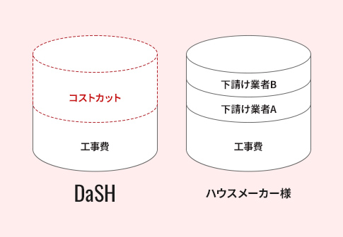 自社施工であれば、ハウスメーカー様と比べると中間マージンがかからないため、余計なコストはカット。適正価格でのご提供が可能です。